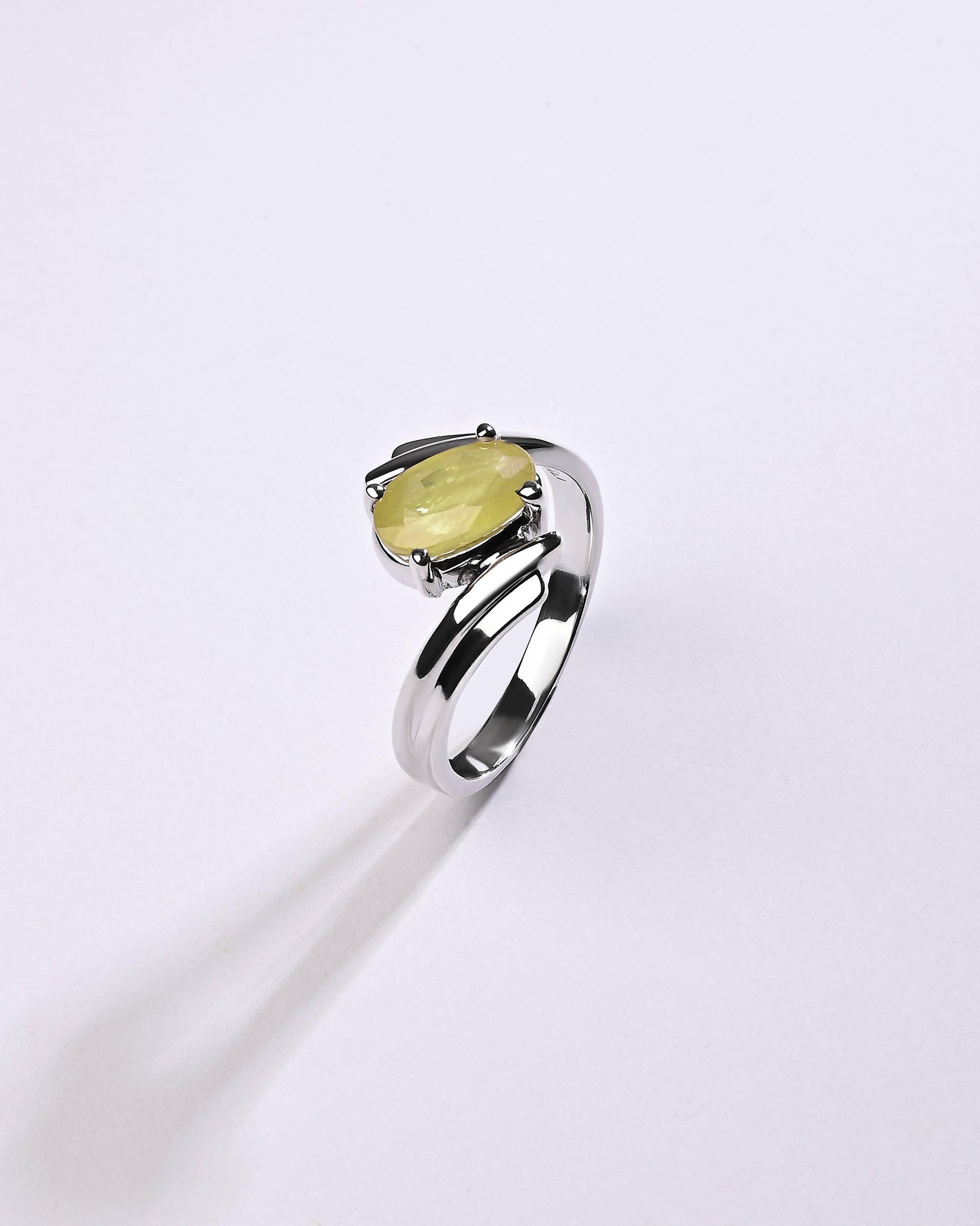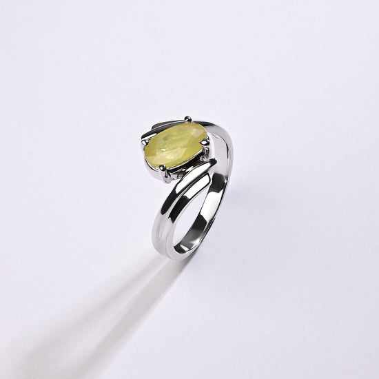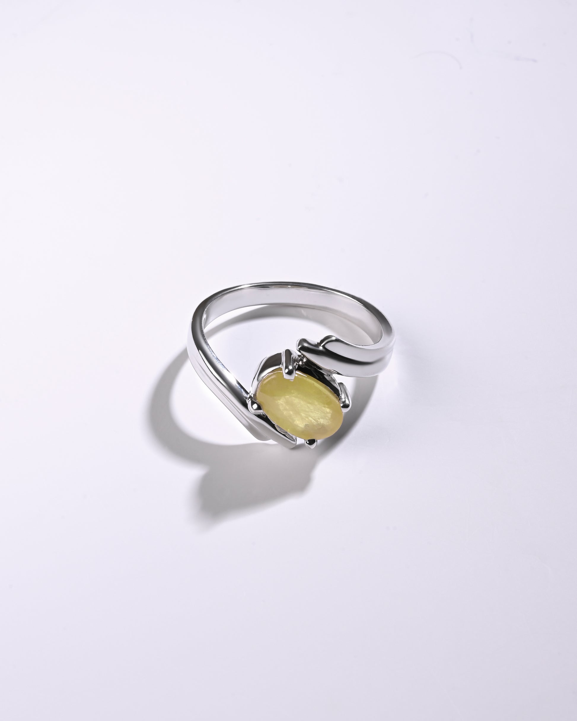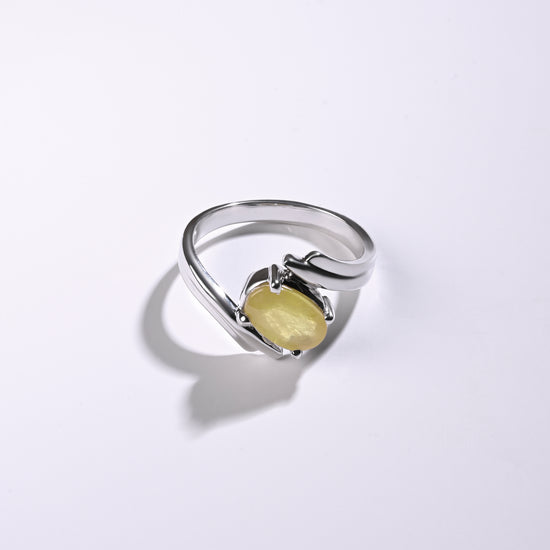 Radiating purity and brilliance, our yellow sapphire ring is set in 925 sterling silver. Known for its golden shimmer, this exquisite gemstone reflects light beautifully, creating a warm and radiant glow. Believed to attract prosperity and success, yellow sapphire is thoughtfully designed to touch your skin, enhancing its astrological energy. Celebrate the perfect blend of elegance and authenticity with a 100% genuine yellow sapphire.