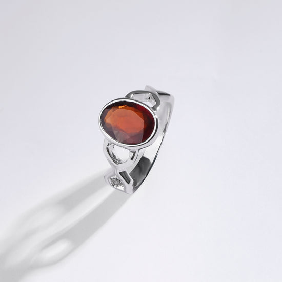 Channel grounding strength and emotional resilience with our deep red Garnet (Gomed) ring, set in 925 sterling silver. A gemstone of passion and protection, Garnet has been cherished across cultures for its energizing and stabilizing powers. Its rich hue and inner glow make it a favorite for those seeking bold yet balanced energy. This ring, featuring 100% genuine garnet, is designed to touch your skin and maximize its astrological benefits.