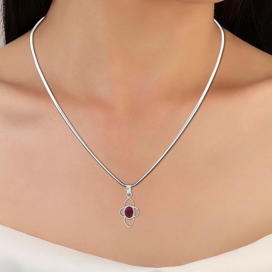 Pure and captivating, our ruby pendant is a tribute to the timeless allure of this precious gemstone. Set in 925 sterling silver, the ruby—known as Ratnaraj, or 'King of Gems'—boasts rich crimson shades with soft pink undertones. Its emotional resonance and bold beauty make it truly unique. Crafted to touch your skin, this pendant delivers unparalleled astrological benefits with 100% authentic ruby brilliance.