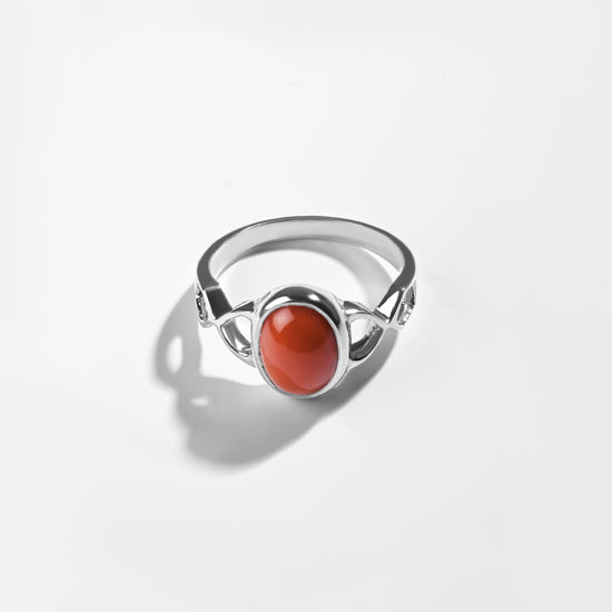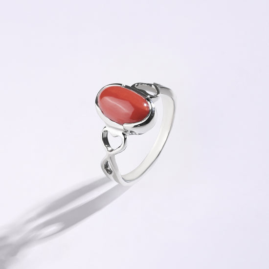 Crafted with exceptional purity, our Italian red coral ring is set in 925 sterling silver. Known as Moonga or Munga in Hindi, this organic gemstone is formed in the depths of the sea, showcasing warm reddish pink to deep red hues. Sourced from the renowned reefs of Italy, this coral ring is designed to touch your skin, enhancing its astrological and energetic effects. Experience 100% genuine coral in timeless craftsmanship.