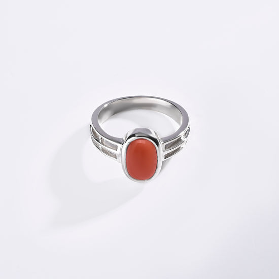 Crafted with exceptional purity, our Italian red coral ring is set in 925 sterling silver. Known as Moonga or Munga in Hindi, this organic gemstone is formed in the depths of the sea, showcasing warm reddish pink to deep red hues. Sourced from the renowned reefs of Italy, this coral ring is designed to touch your skin, enhancing its astrological and energetic effects. Experience 100% genuine coral in timeless craftsmanship.