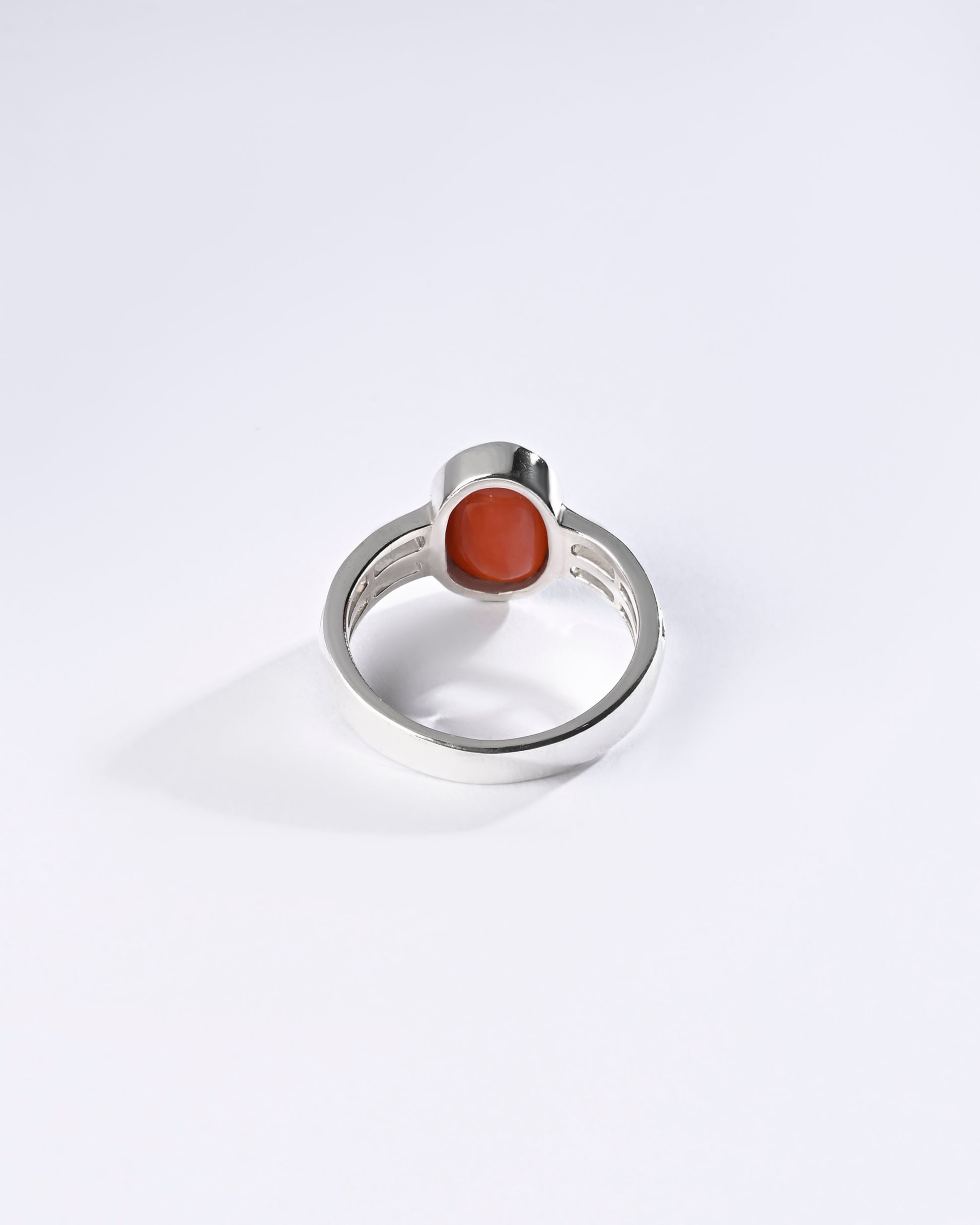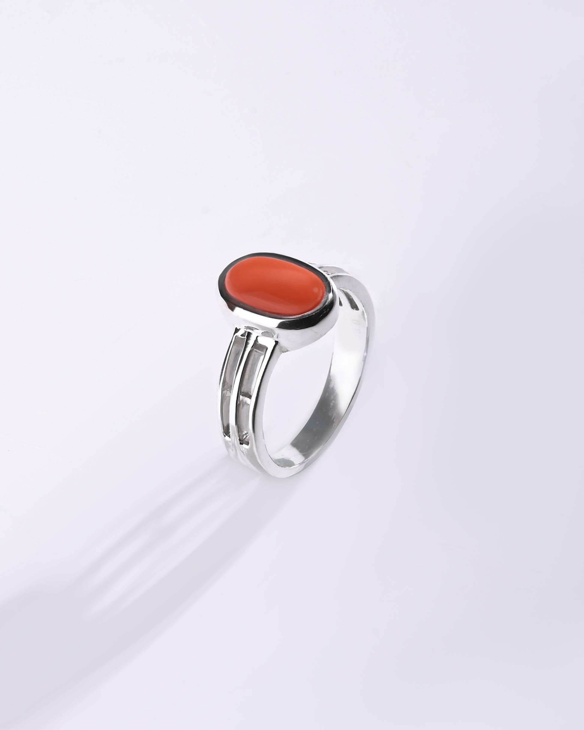 Crafted with exceptional purity, our Italian red coral ring is set in 925 sterling silver. Known as Moonga or Munga in Hindi, this organic gemstone is formed in the depths of the sea, showcasing warm reddish pink to deep red hues. Sourced from the renowned reefs of Italy, this coral ring is designed to touch your skin, enhancing its astrological and energetic effects. Experience 100% genuine coral in timeless craftsmanship.