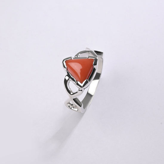 Crafted with exceptional purity, our Italian red coral ring is set in 925 sterling silver. Known as Moonga or Munga in Hindi, this organic gemstone is formed in the depths of the sea, showcasing warm reddish pink to deep red hues. Sourced from the renowned reefs of Italy, this coral ring is designed to touch your skin, enhancing its astrological and energetic effects. Experience 100% genuine coral in timeless craftsmanship.