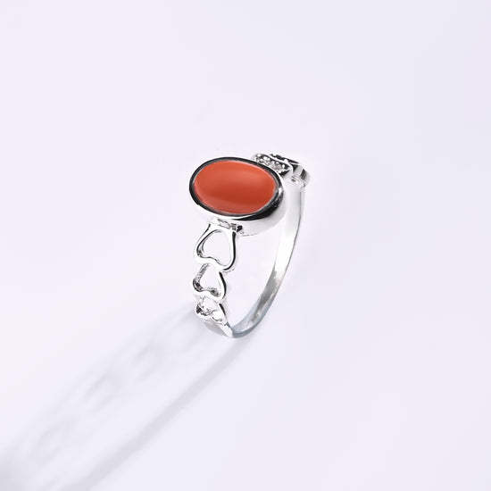 Crafted with exceptional purity, our Italian red coral ring is set in 925 sterling silver. Known as Moonga or Munga in Hindi, this organic gemstone is formed in the depths of the sea, showcasing warm reddish pink to deep red hues. Sourced from the renowned reefs of Italy, this coral ring is designed to touch your skin, enhancing its astrological and energetic effects. Experience 100% genuine coral in timeless craftsmanship.