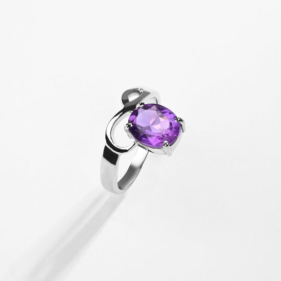 Daily-Wear Amethyst (Jamunia) Ring – 925 Silver - #1110N4