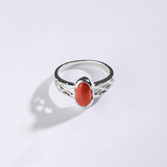 Crafted with exceptional purity, our Italian red coral ring is set in 925 sterling silver. Known as Moonga or Munga in Hindi, this organic gemstone is formed in the depths of the sea, showcasing warm reddish pink to deep red hues. Sourced from the renowned reefs of Italy, this coral ring is designed to touch your skin, enhancing its astrological and energetic effects. Experience 100% genuine coral in timeless craftsmanship.