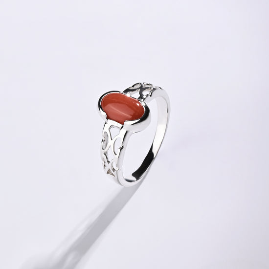 Deep Coral (Moonga) Ring – 925 Silver Elegance - #1219HB