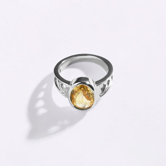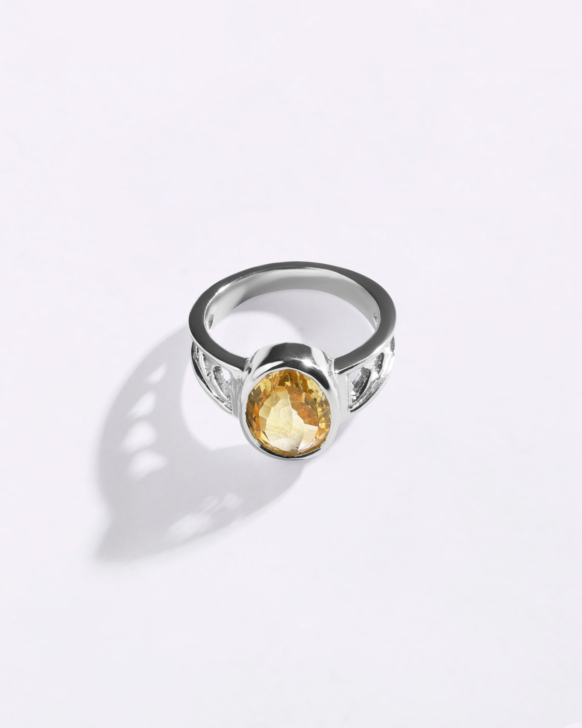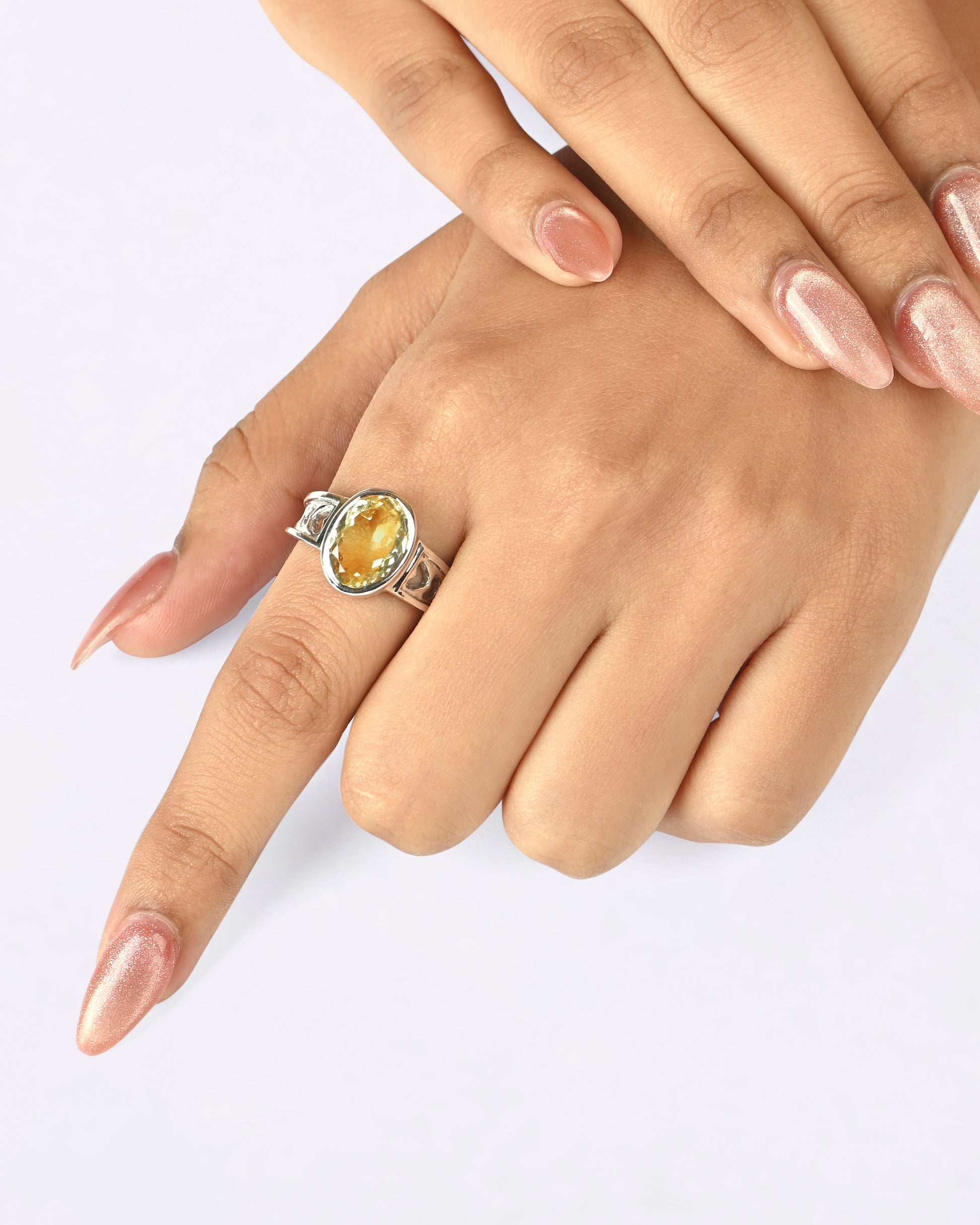 Infuse your life with positivity and personal strength with our Golden Topaz (Sunahara Pukhraj) ring, set in 925 sterling silver.
