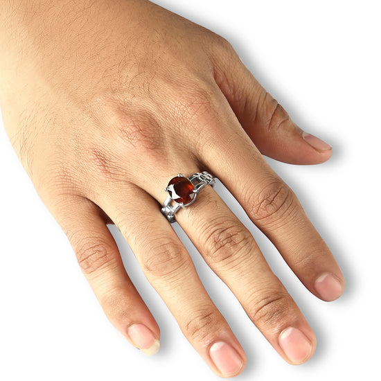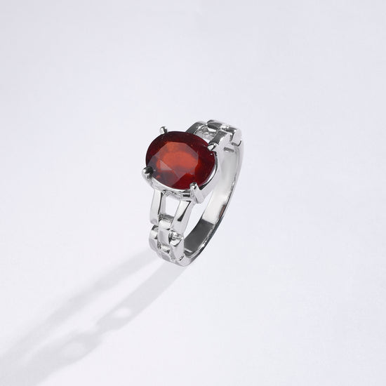 Channel grounding strength and emotional resilience with our deep red Garnet (Gomed) ring, set in 925 sterling silver. A gemstone of passion and protection, Garnet has been cherished across cultures for its energizing and stabilizing powers. Its rich hue and inner glow make it a favorite for those seeking bold yet balanced energy. This ring, featuring 100% genuine garnet, is designed to touch your skin and maximize its astrological benefits.