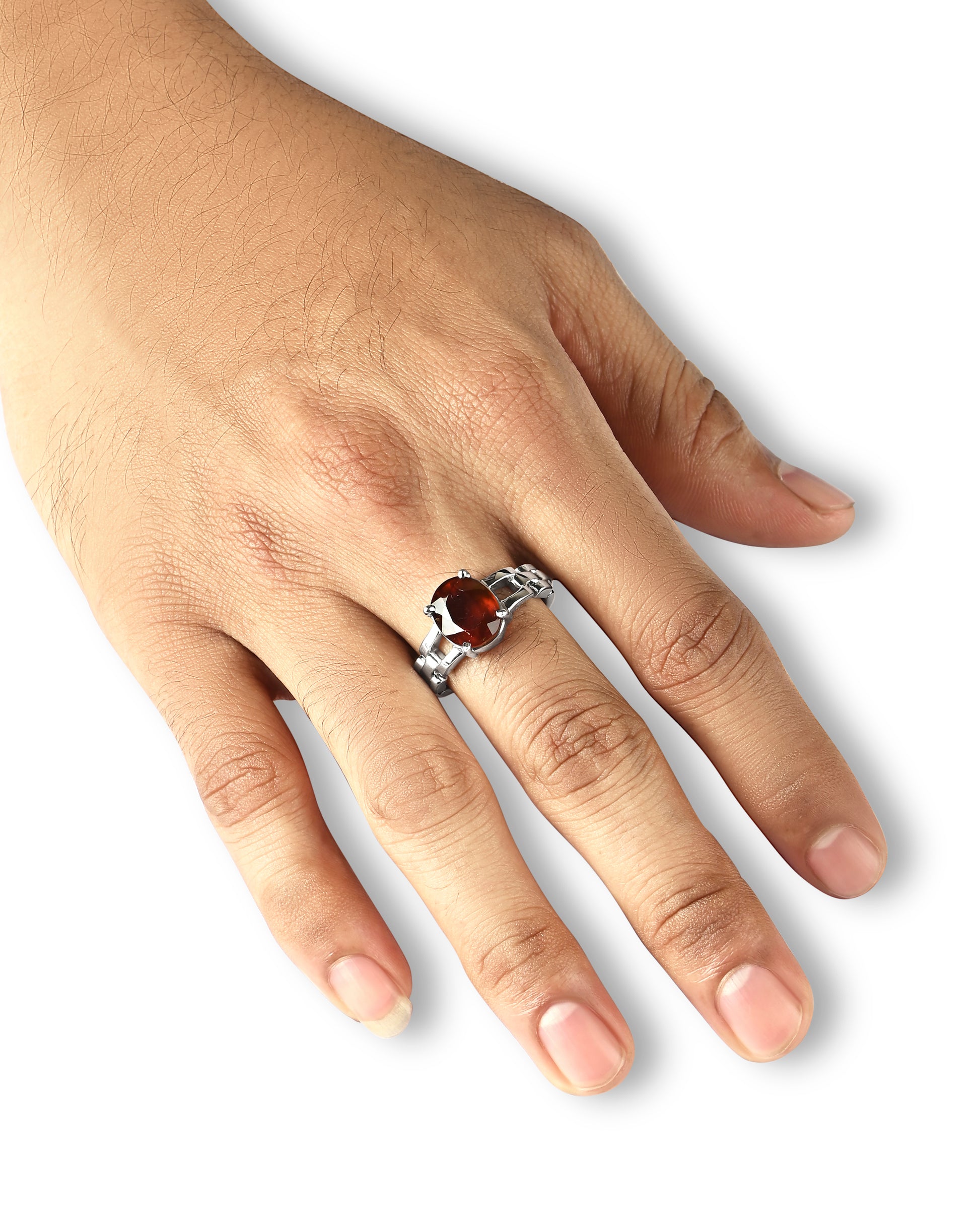 Elegant Garnet (Gomed) Ring – 925 Silver - #1245N4