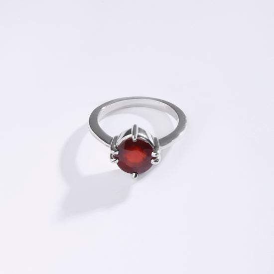 Channel grounding strength and emotional resilience with our deep red Garnet (Gomed) ring, set in 925 sterling silver. A gemstone of passion and protection, Garnet has been cherished across cultures for its energizing and stabilizing powers. Its rich hue and inner glow make it a favorite for those seeking bold yet balanced energy. This ring, featuring 100% genuine garnet, is designed to touch your skin and maximize its astrological benefits.
