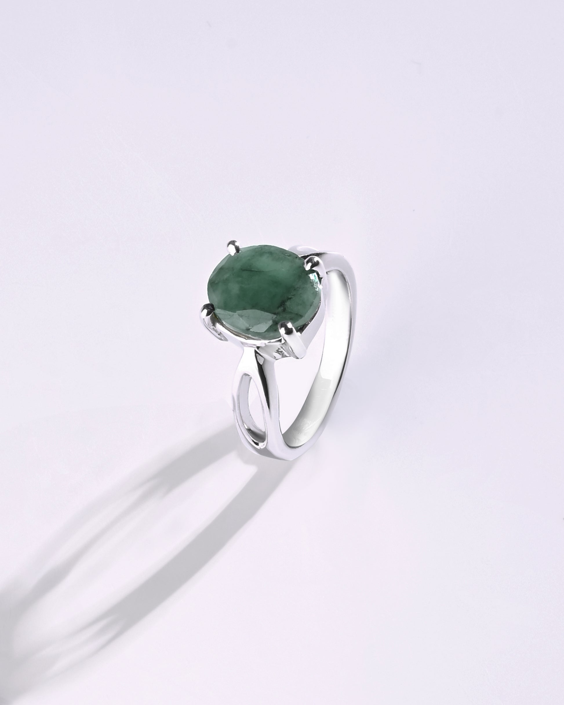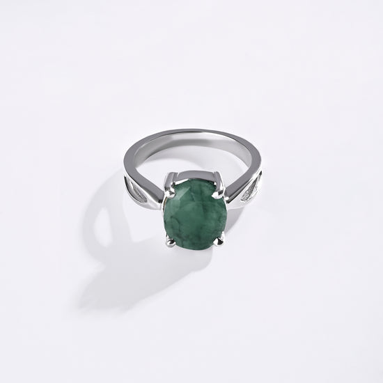 The purity of nature shines in our rich green emerald, set in 925 sterling silver. This precious gemstone from the Beryl family owes its vibrant green hue to natural traces of chromium. Cherished for centuries as a symbol of renewal and vitality, emerald (Panna) is carefully designed to touch your skin for optimal astrological benefits. Experience 100% authentic emeralds in a luxurious and expertly crafted ring.