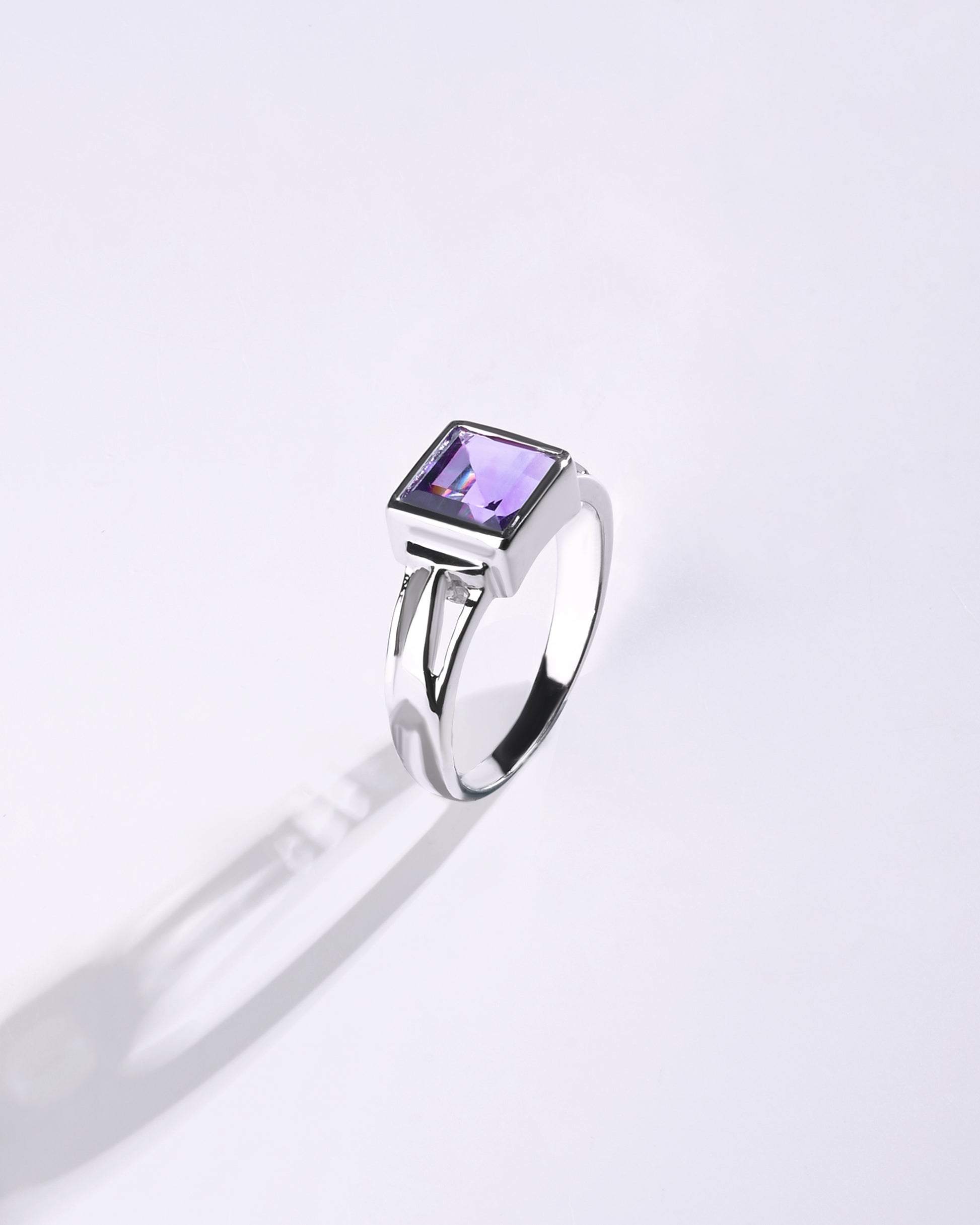 Gleaming Amethyst (Jamunia) Ring – 925 Silver - #1242B Sq