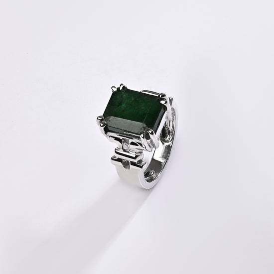 Luxe Edge Emerald (Panna) Ring – 925 Silver - #1199N8 Re