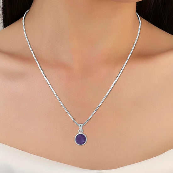 Let calm and clarity radiate from our Amethyst (Jamunia) pendant, crafted in 925 sterling silver. This soothing violet gemstone is celebrated for promoting peace, spiritual growth, and emotional balance. Known as a stone of the mind, Amethyst is believed to enhance intuition and focus. Carefully crafted to touch your skin, this pendant is a blend of elegance and 100% authentic Jamunia purity
