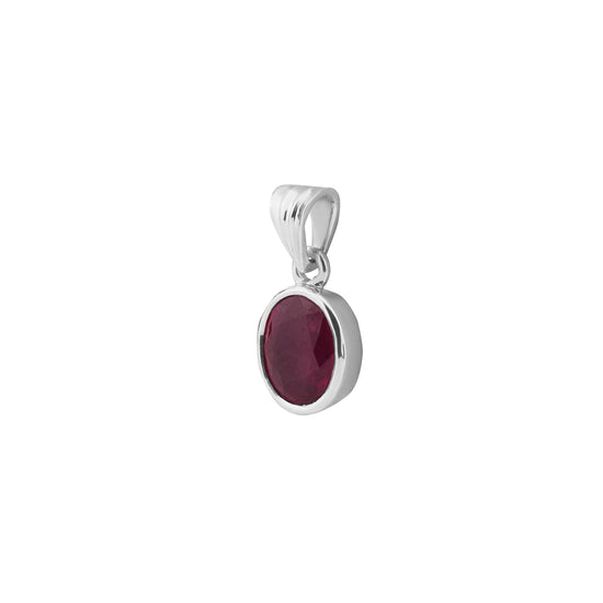 Pure and captivating, our ruby pendant is a tribute to the timeless allure of this precious gemstone. Set in 925 sterling silver, the ruby—known as Ratnaraj, or 'King of Gems'—boasts rich crimson shades with soft pink undertones. Its emotional resonance and bold beauty make it truly unique. Crafted to touch your skin, this pendant delivers unparalleled astrological benefits with 100% authentic ruby brilliance.