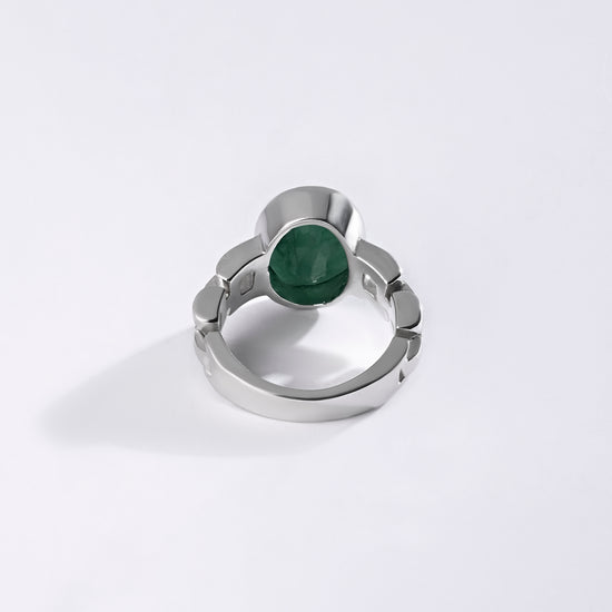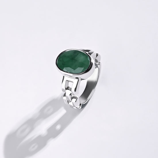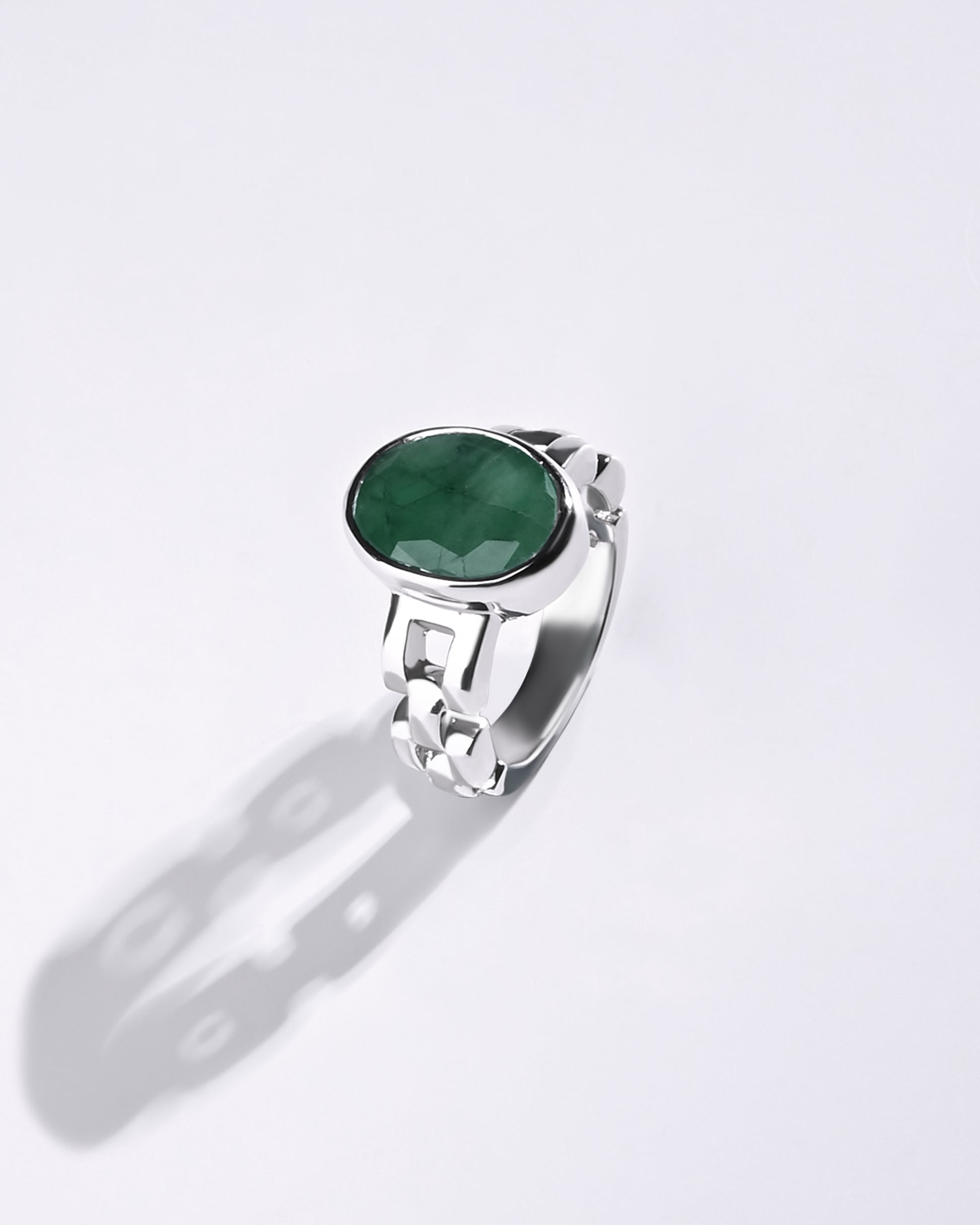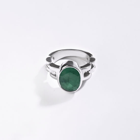 The purity of nature shines in our rich green emerald, set in 925 sterling silver. This precious gemstone from the Beryl family owes its vibrant green hue to natural traces of chromium. Cherished for centuries as a symbol of renewal and vitality, emerald (Panna) is carefully designed to touch your skin for optimal astrological benefits. Experience 100% authentic emeralds in a luxurious and expertly crafted ring.