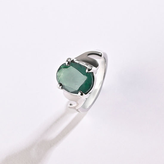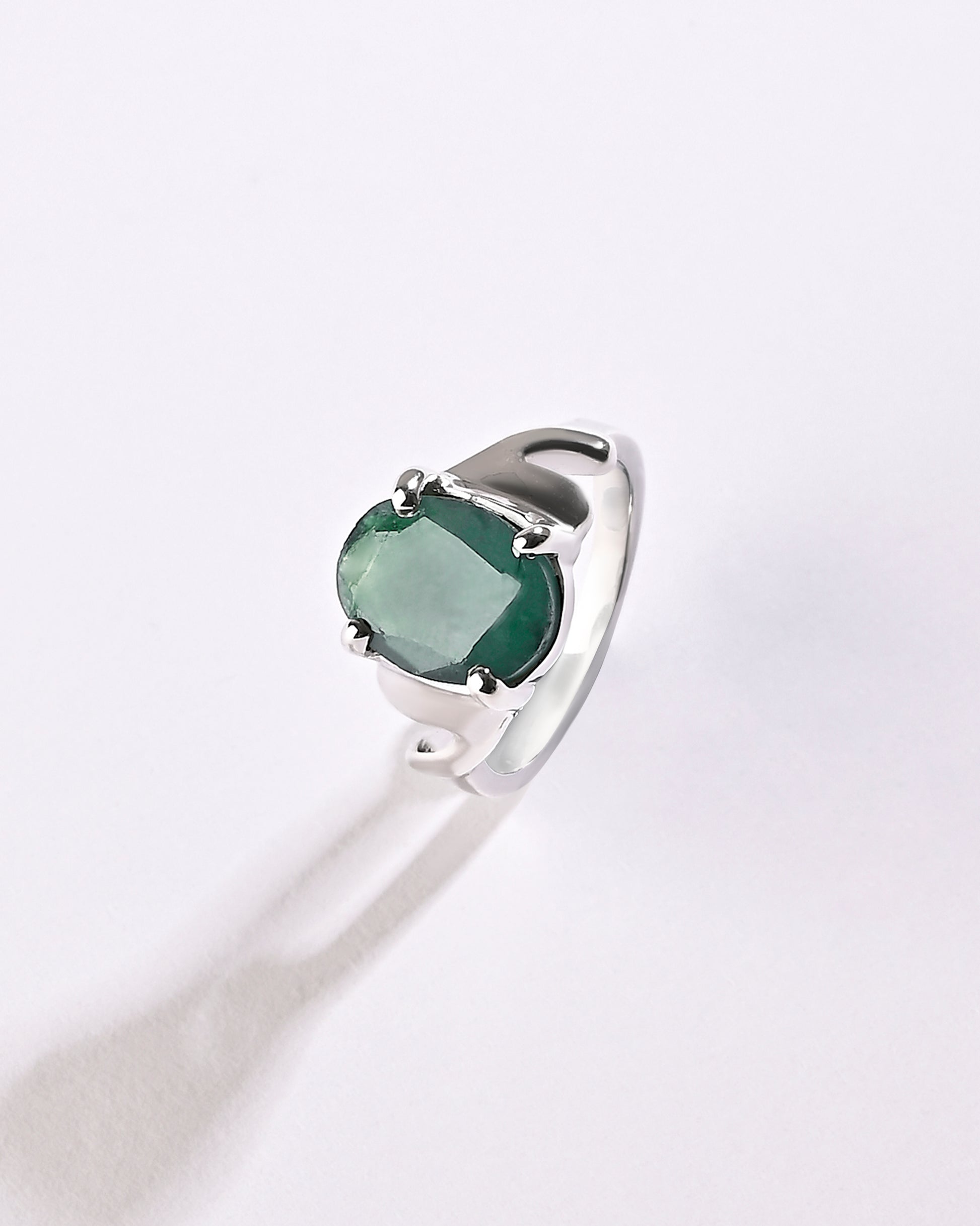 The purity of nature shines in our rich green emerald, set in 925 sterling silver. This precious gemstone from the Beryl family owes its vibrant green hue to natural traces of chromium. Cherished for centuries as a symbol of renewal and vitality, emerald (Panna) is carefully designed to touch your skin for optimal astrological benefits. Experience 100% authentic emeralds in a luxurious and expertly crafted ring.