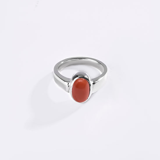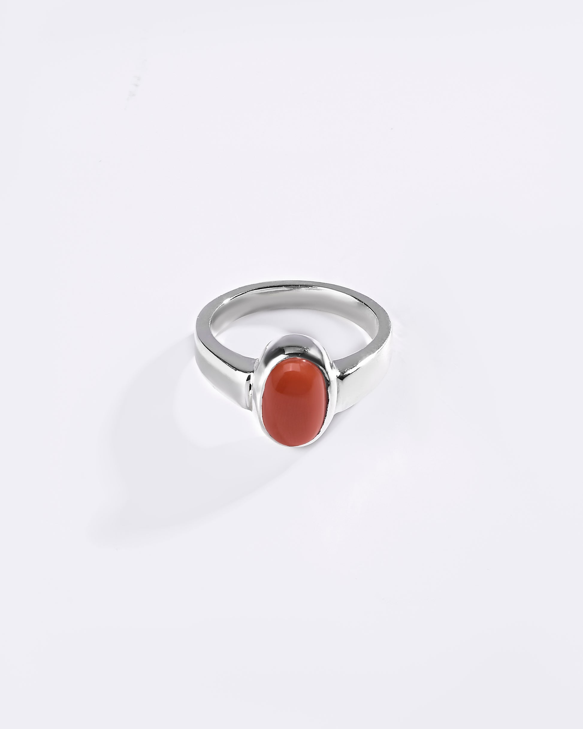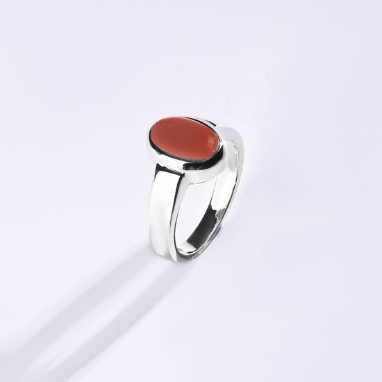 Crafted with exceptional purity, our Italian red coral ring is set in 925 sterling silver. Known as Moonga or Munga in Hindi, this organic gemstone is formed in the depths of the sea, showcasing warm reddish pink to deep red hues. Sourced from the renowned reefs of Italy, this coral ring is designed to touch your skin, enhancing its astrological and energetic effects. Experience 100% genuine coral in timeless craftsmanship.