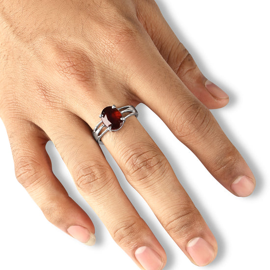 Channel grounding strength and emotional resilience with our deep red Garnet (Gomed) ring, set in 925 sterling silver. A gemstone of passion and protection, Garnet has been cherished across cultures for its energizing and stabilizing powers. Its rich hue and inner glow make it a favorite for those seeking bold yet balanced energy. This ring, featuring 100% genuine garnet, is designed to touch your skin and maximize its astrological benefits.