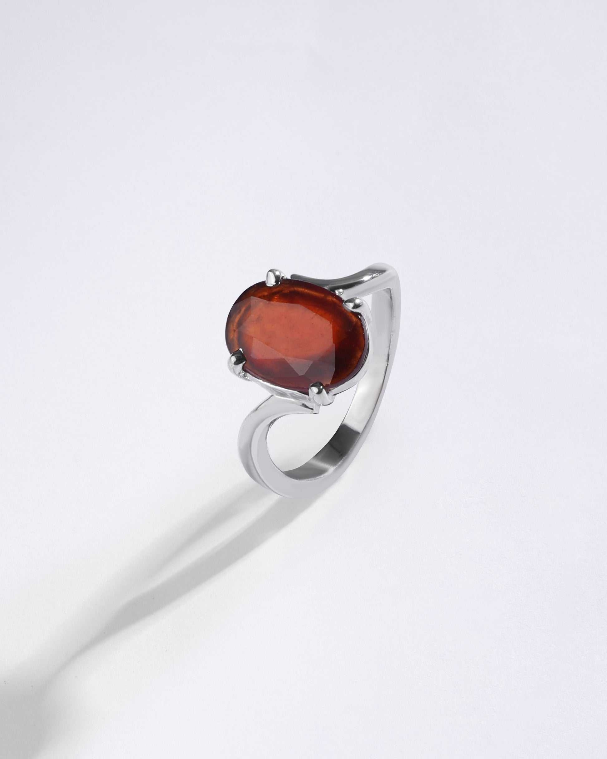 Simple Garnet (Gomed) Ring – 925 Silver - #1152N4