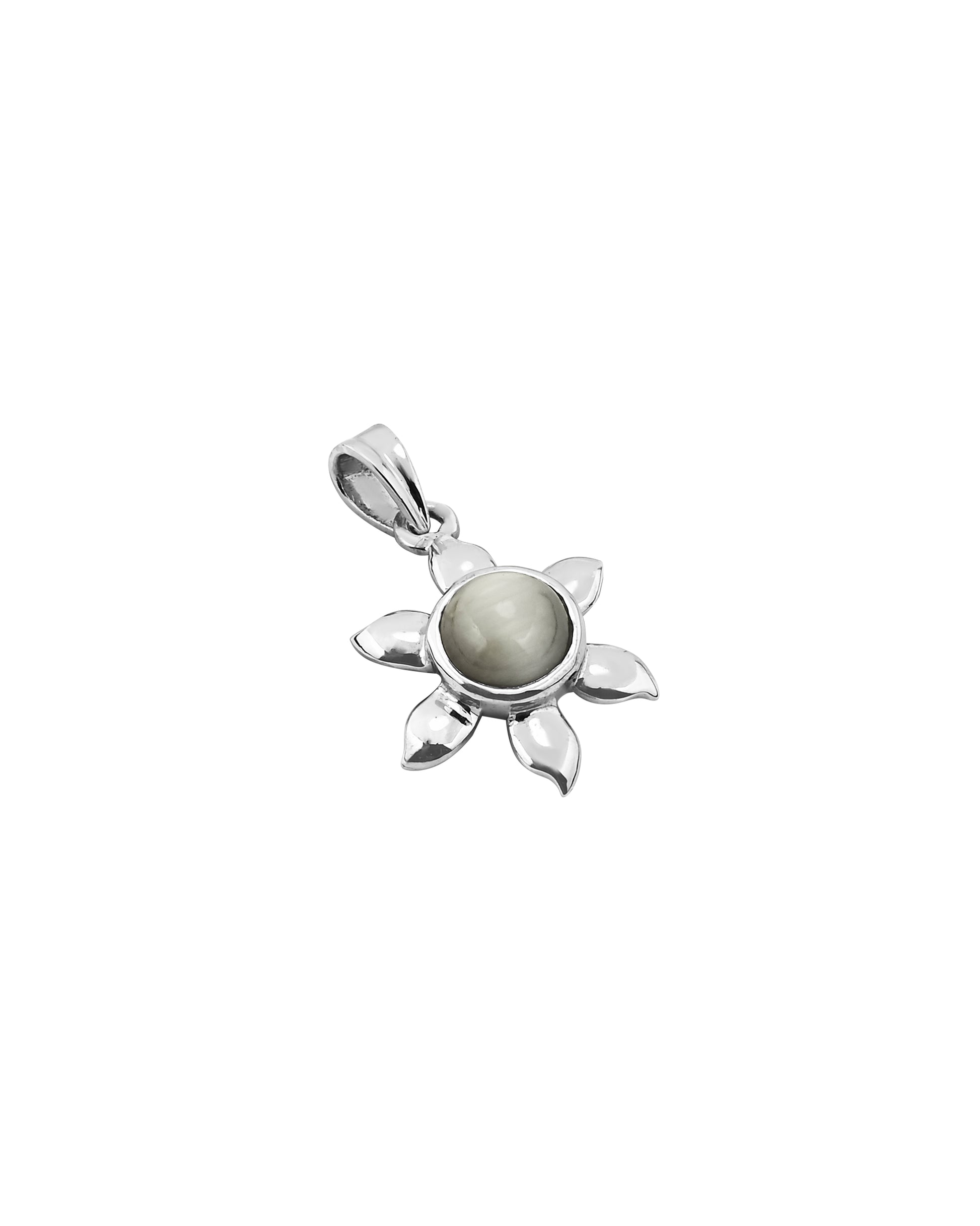 Sun Petal Shaped Cat's Eye Pendant in 925 Silver